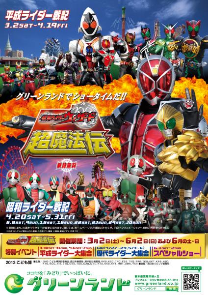 この春、グリーンランドに仮面ライダーウィザードが登場! オリジナルストーリーでライダー達が大活躍!他にも大注目の「初音ミク」のイベントをはじめ、 ゴールデンウィークには「ドキドキ!プリキュアショー」などイベント盛りだくさん!! 詳しくはグリーンランドHPをご覧ください。