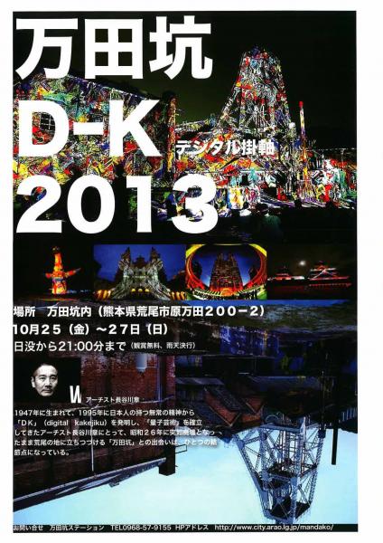 ※D-K(デジタル掛け軸)とは・・・非連続データイメージを自然の山やビル、寺院など大きな建物に映し出す光のアートです。