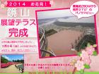 今春、リニューアル工事の目玉施設として、園地西側の鏡山展望台に展望テラスが完成するので、下記の期日よりお客様に使用していただくことができるようになりました。これまでの展望場所からテラスを12m前方にせり出したことで、視界約270°の遮るもののない素晴らしいパノラマビューを楽しんでいただけます。