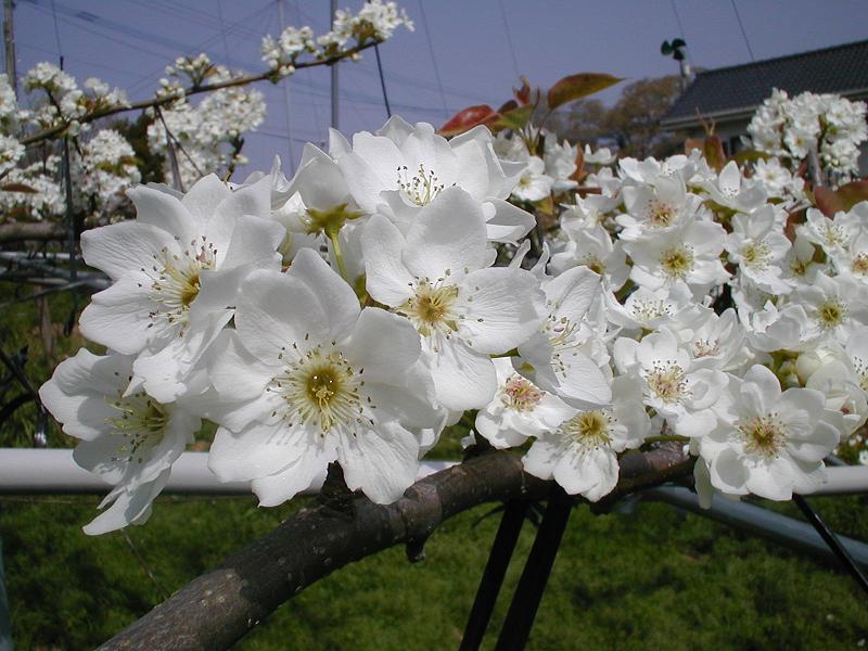 真っ白で可憐な花 一面の梨畑を眺めながら、ウォーキングしませんか?