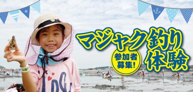 巣穴に差し込んだ筆をマジャクが押し返す習性を利用して捕まえる有明海の伝統漁法で釣りあげます。あなたも名人の指導のもと、マジャク釣りを体験しませんか?