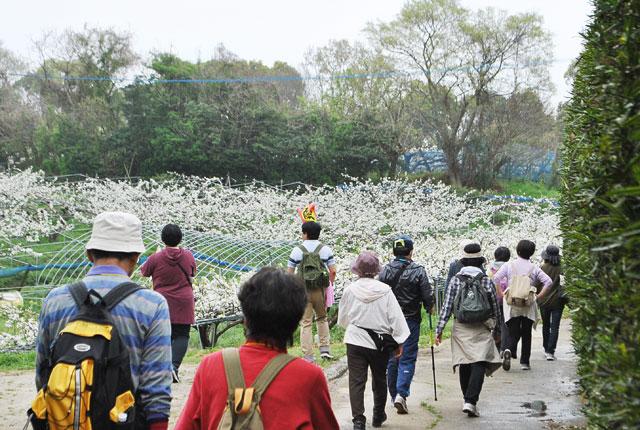心地よい春風に包まれて、白くて可憐な花が咲く荒尾路をウォーキング。