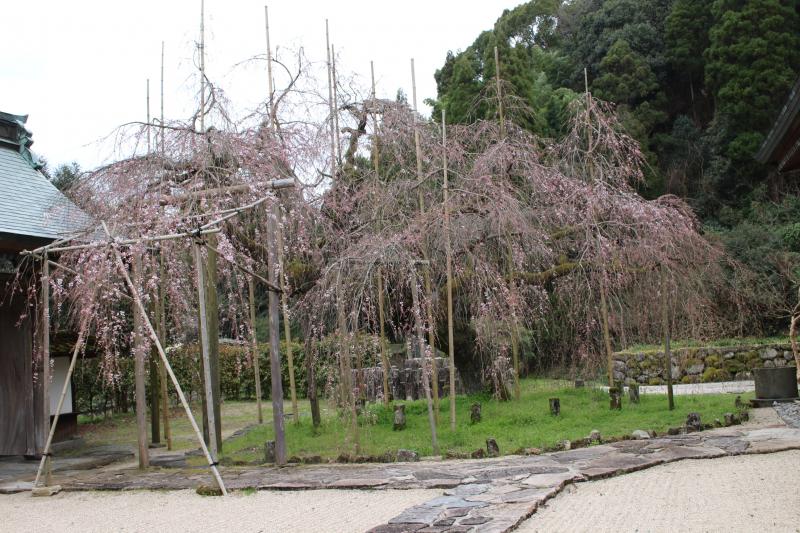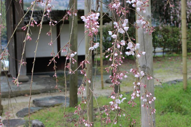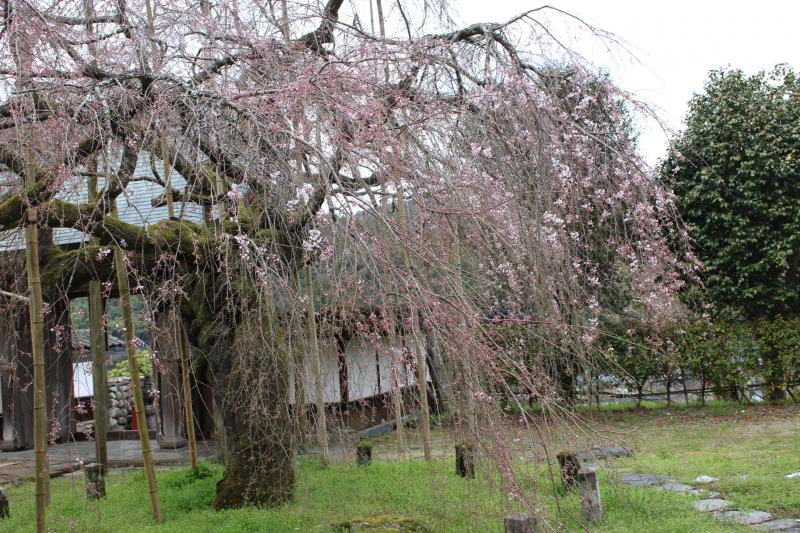 黒木町木屋の「光善寺のしだれ桜」が咲き始めました。例年より4日~5日程早く、この様子では見頃は3月20日頃になりそうです。